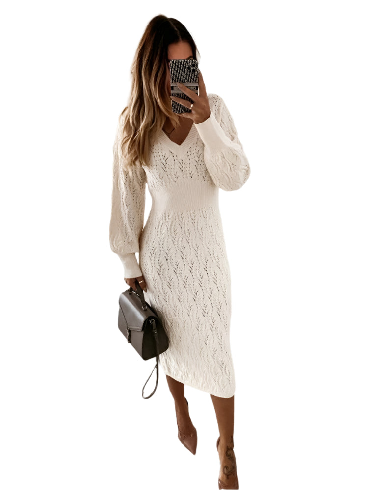 Kvinders Midi Jurk V-Hals Langærmet Blød Stofblanding