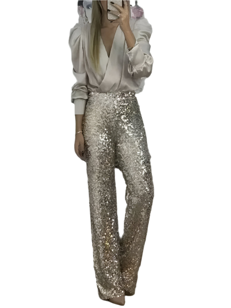 Kvinders Festbukser Mousserende Paljetter Elastan