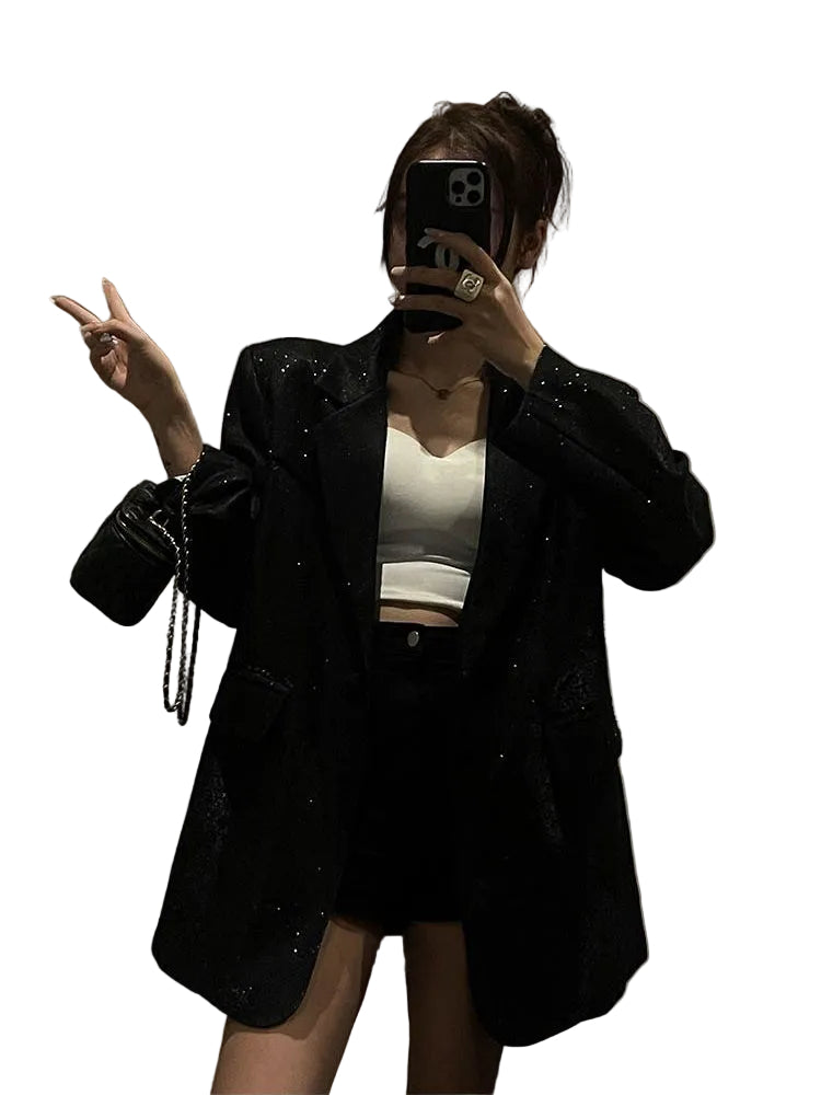 Celeste Blazer er designet med funklende pailletter, der giver en magisk glans, mens det bløde materiale sikrer komfort hele dagen. Den oversized pasform gør det nemt at bære blazeren til enhver lejlighed, fra smart til casual.