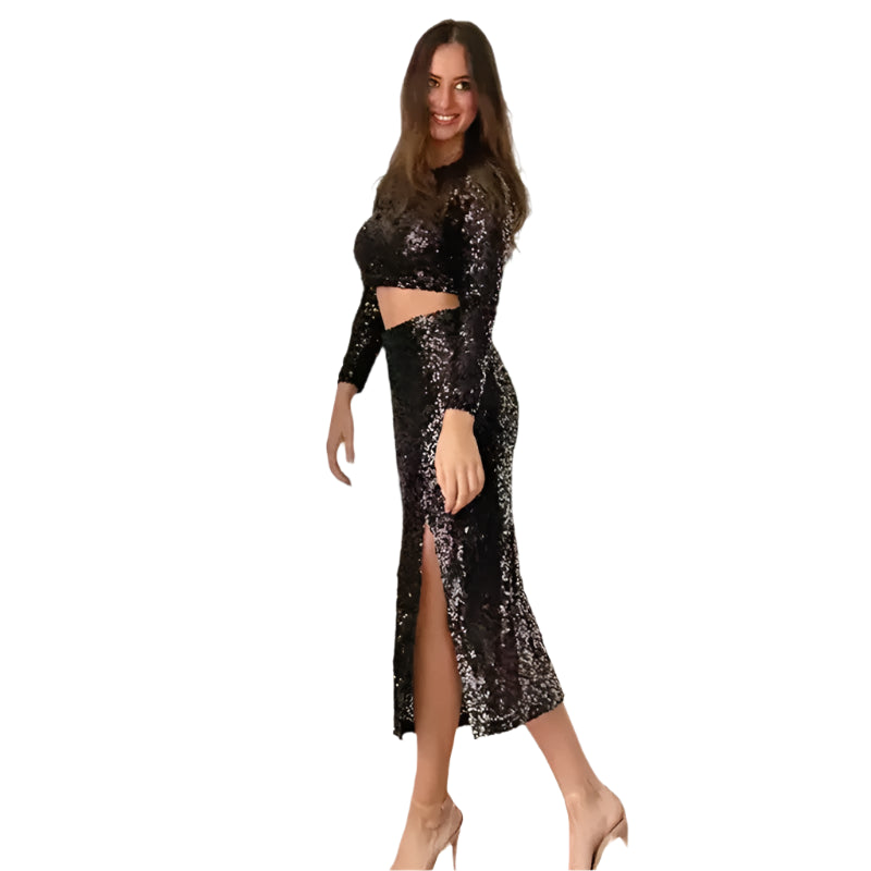 Dette to-delte sæt består af en smuk paillet top og en matchende nederdel, der er ideel til galas, cocktailfester eller bryllupper. Designet med fokus på både komfort og stil, giver dette sæt dig mulighed for at skinne hele aftenen.