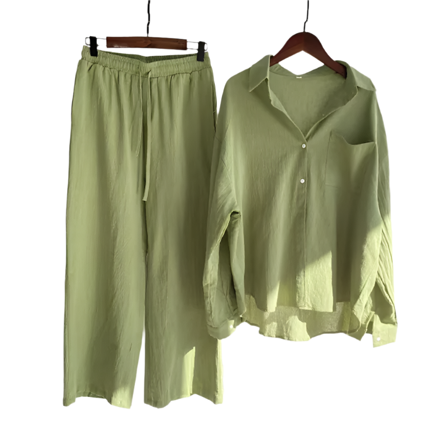 Oplev elegance med Leni, et to-delt sæt der kombinerer stil og komfort. Dette sæt er designet til at få dig til at føle dig selvsikker og chic, uanset anledningen.