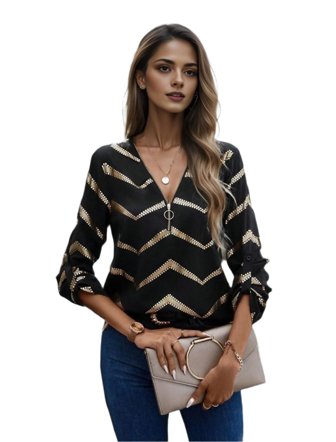 Designet med legende striber, tilføjer denne bluse et friskt pust til enhver garderobe. Den alsidige stil gør den let at kombinere med forskellige outfits, hvilket gør den til et must-have i din samling.
