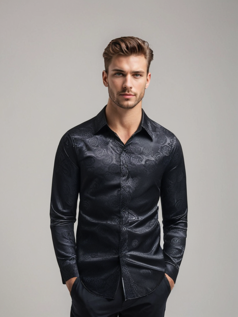 Oplev en moderne stil med denne langærmede skjorte, der prydes af subtile blomsterdetaljer. Den komfortable pasform gør den ideel til både formelle og afslappede anledninger, så du kan føle dig godt tilpas hele dagen.
