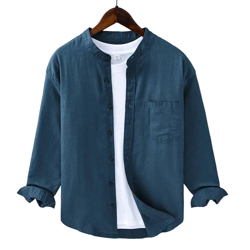 Skjorten har en klassisk standkrave og knaplukning, hvilket gør den ideel til både hverdag og mere formelle lejligheder. Den praktiske brystlomme tilføjer et funktionelt element til designet, hvilket gør den både stilfuld og praktisk.