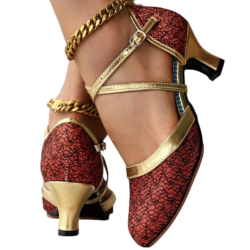 Designet med et slankt profil og en glansfuld finish, disse sko fremhæver din fods naturlige skønhed. De dobbelte remme krydser subtilt over vristen og er sikret med en fin spænde, hvilket giver et moderne og sofistikeret udtryk.