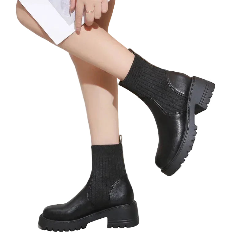 Designet med en unik splitstrik og imiteret læder, giver disse støvler et moderne og trendy udseende. Den gummierede platformshæl tilføjer et grunge-element, der gør dem ideelle til hverdagens brug.