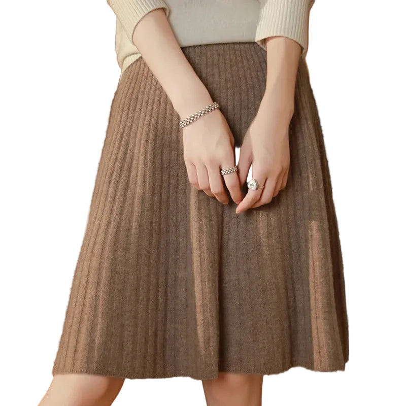 Oplev den perfekte kombination af komfort og stil med denne strikkede nederdel. Den bløde, børstede uld giver en hyggelig følelse, mens det tætsiddende ribmønster fremhæver dine former.