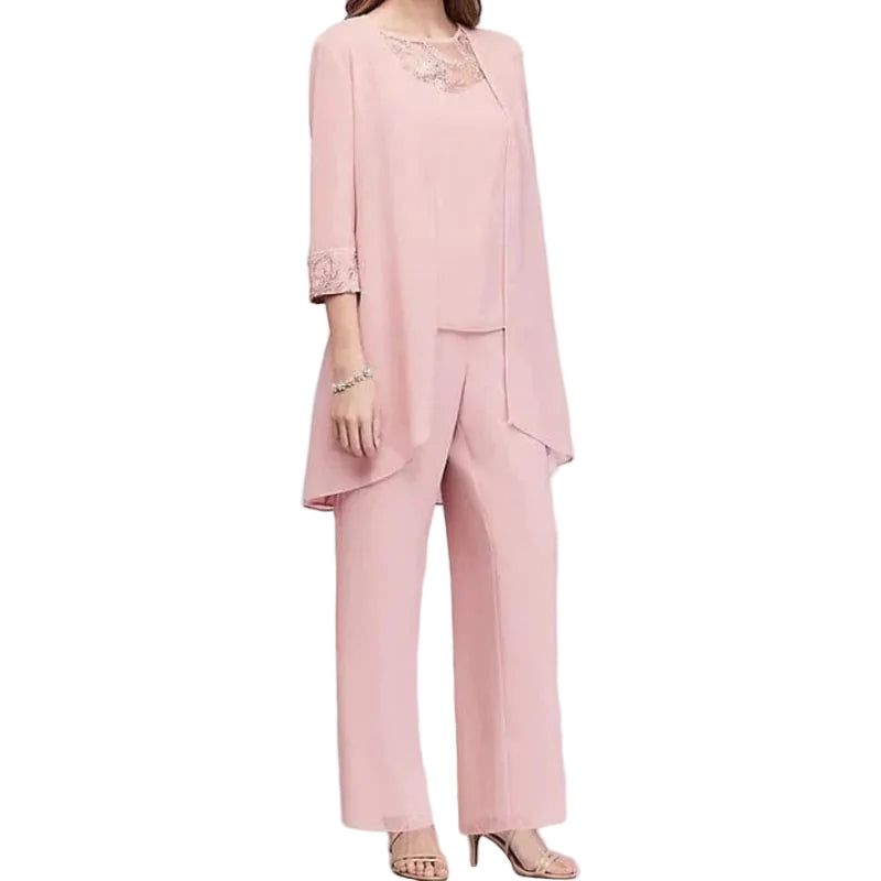 Oplev den perfekte kombination af stil og komfort med dette tredelte buksesæt, der er designet til den moderne kvinde. Dette sæt giver dig mulighed for at udtrykke din personlige stil, uanset om du skal på arbejde eller til sociale arrangementer.