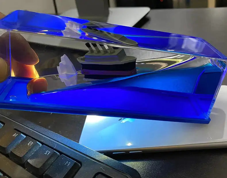 Det får dig til at føle, at det altid er sommer og en afslappende tid (og det minder dig selvfølgelig om din yndlingsfilm). Så når du føler dig nervøs eller keder dig, skal du bare tage fat i dette legetøj og vippe det for at se dit lille Titanic-skib surfe på de farlige bølger på åbent hav, lige ved siden af det isbjerg, der ødelagde det.