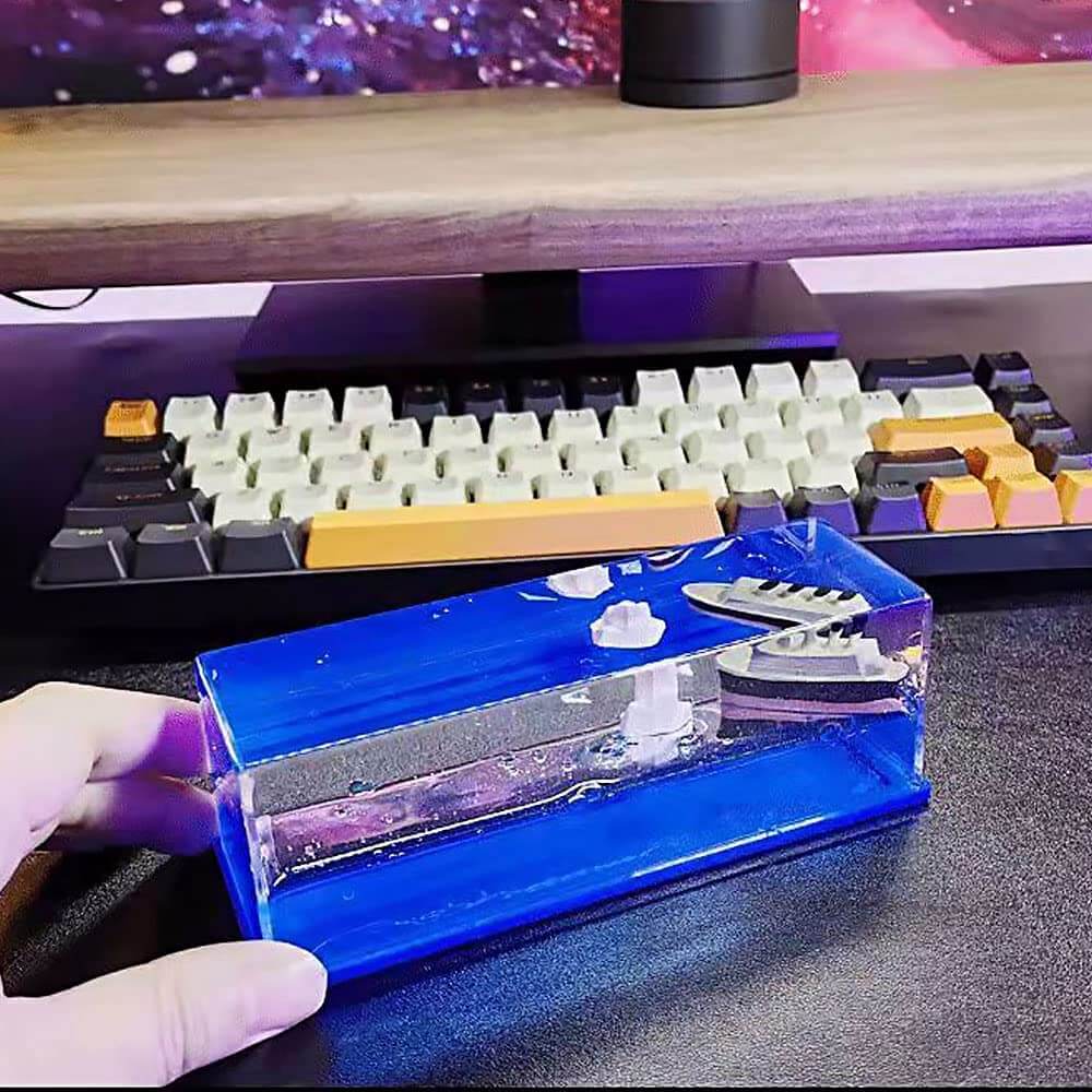 Dette usynlige krydstogtskibsflaske-bordlegetøj har et klart ydre, og indersiden er fyldt med beroligende blå væske, et flydende Titanic-skib og et isbjerg. Du kan forsigtigt vippe papirvægten for at opleve en beroligende, stressreducerende oplevelse. Ideel til at lindre børn og voksne, der lider af angst.
