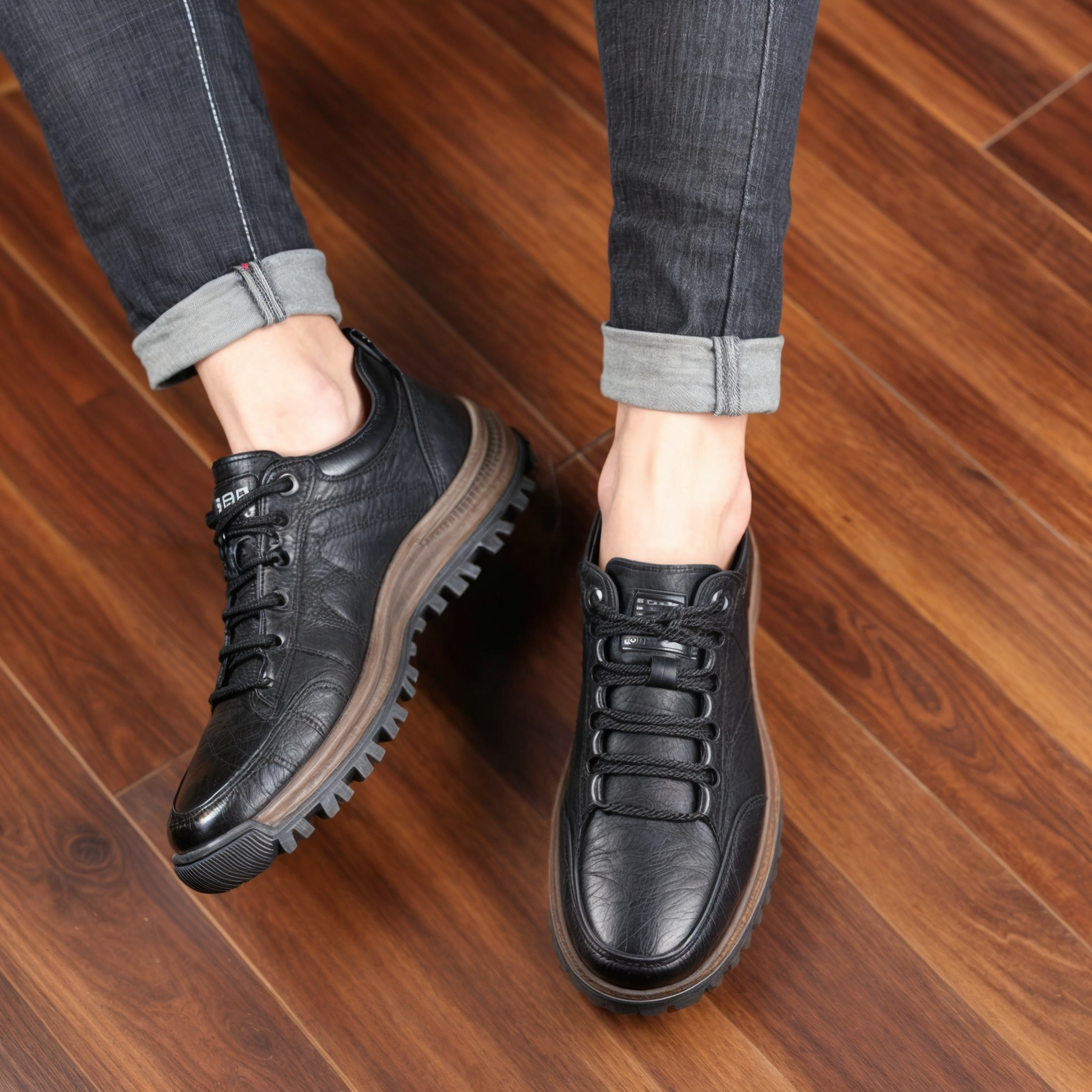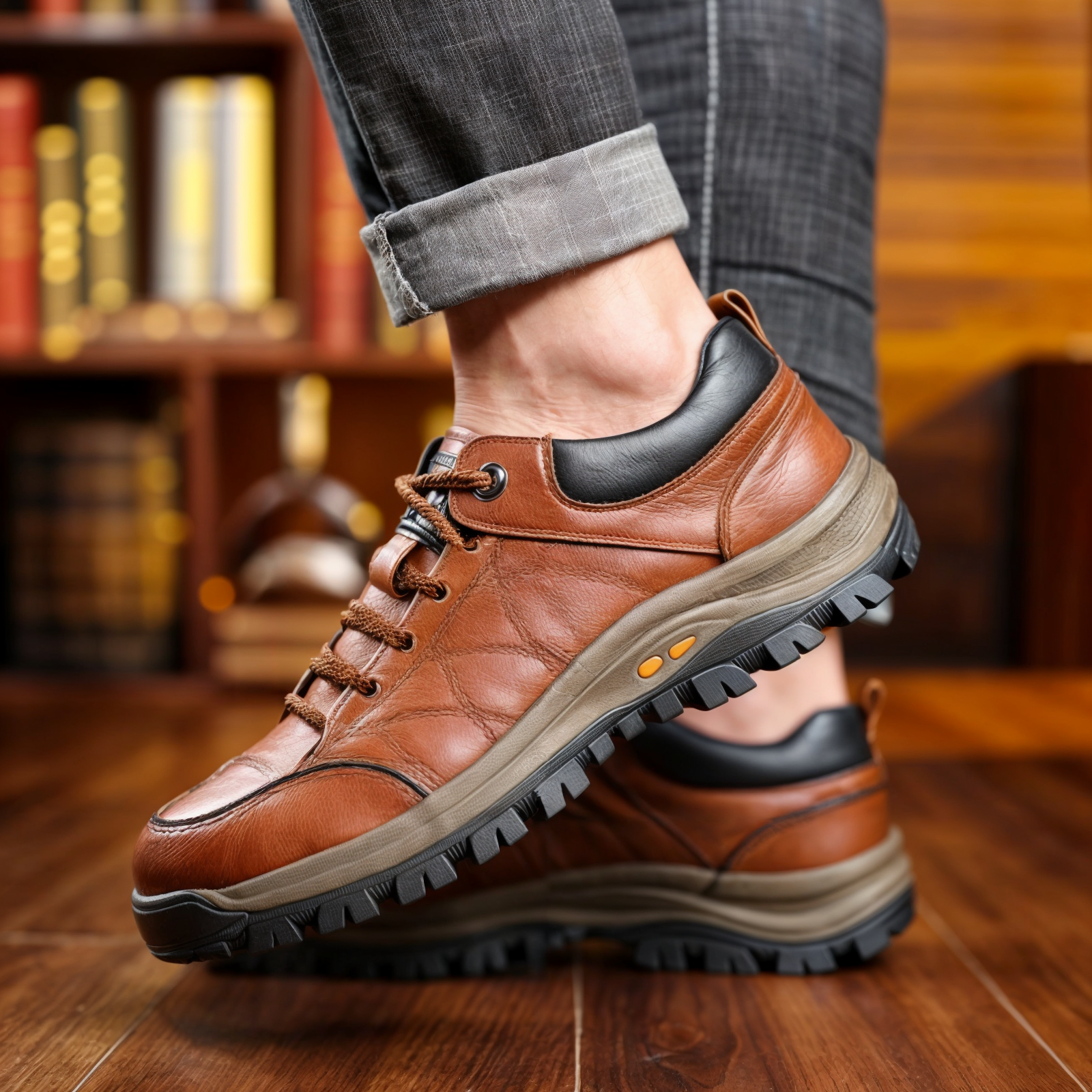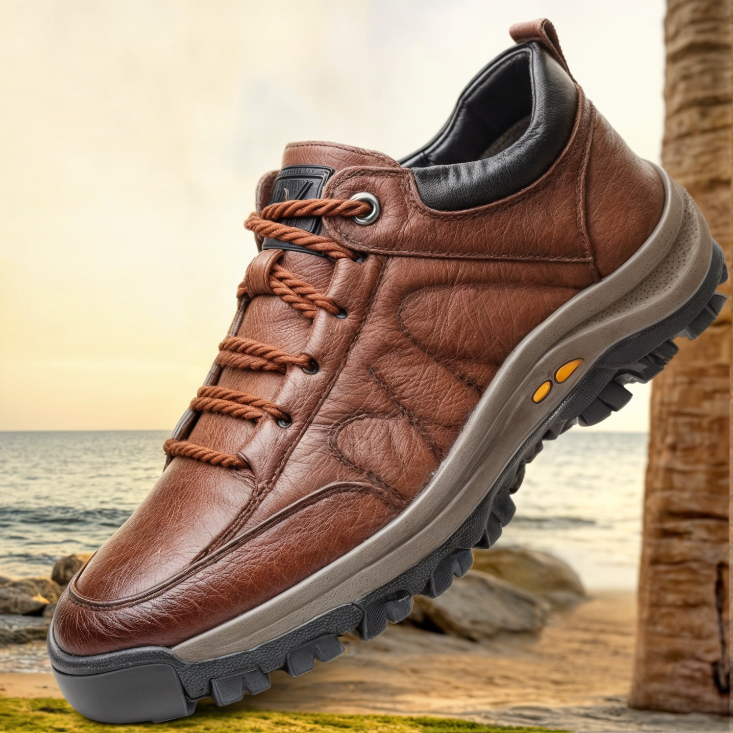 Vores afslappede vandresko med snørebånd er lavet af førsteklasses læder og udviklet med præcision, så de er både holdbare og komfortable. Uanset om du navigerer på stenede stier eller slentrer gennem byens gader, holder disse alsidige støvler dig stabil på fødderne takket være deres innovative skridsikre teknologi.