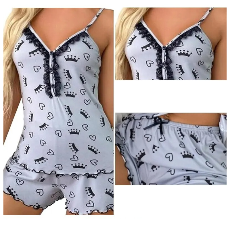 Dette sæt består af en ærmeløs top og matchende shorts, fremstillet af blødt polyester, som giver komfort hele natten. Det er det ideelle valg for dem, der ønsker at kombinere komfort med et strejf af stil.