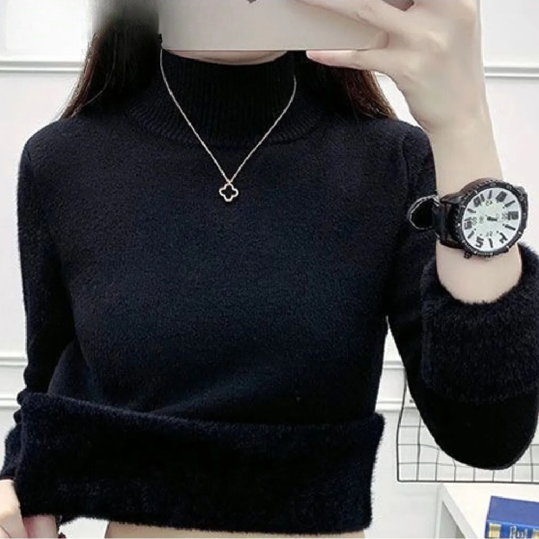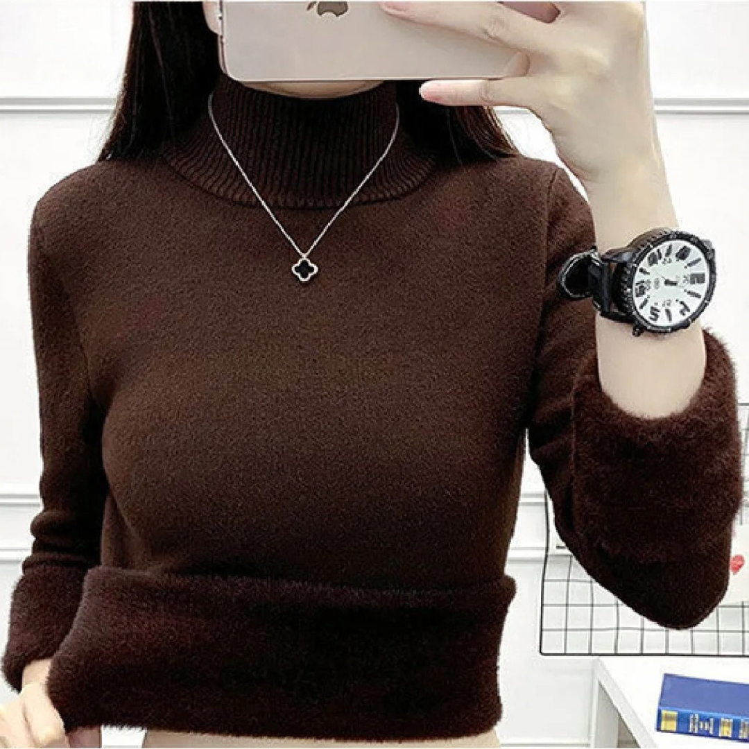 Pak dig selv ind i luksus med vores elegante, fløjlsforede sweater med rullekrave til kvinder. Denne tykke pullover, der er fremstillet af overdådigt fløjl og designet til at sidde tæt, kombinerer klassisk stil med moderne varme. Den slanke silhuet er perfekt til lag-på-lag, mens det bløde fløjlsfor sikrer, at du forbliver lun og elegant selv på de koldeste dage.