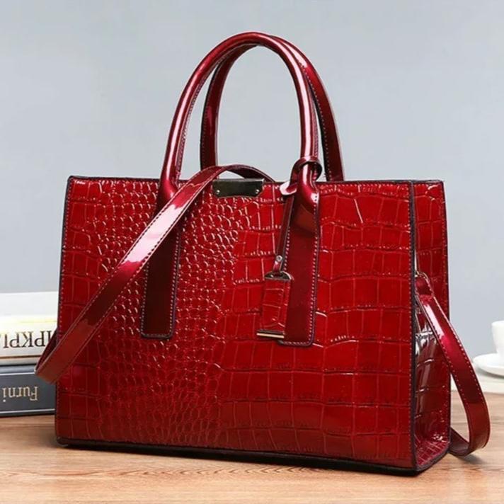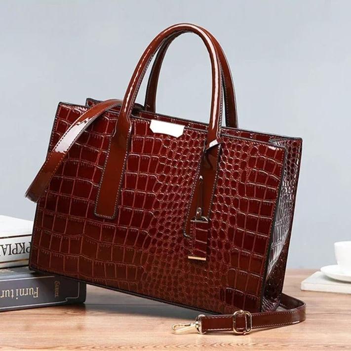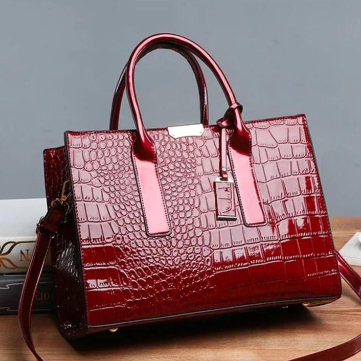RUMMELIG OPBEVARINGSKAPACITET: Med sit store indre giver denne krokodilletaske rigelig plads til alle dine daglige fornødenheder, hvilket gør den perfekt til arbejde, shopping eller rejser.